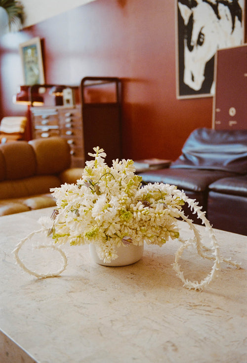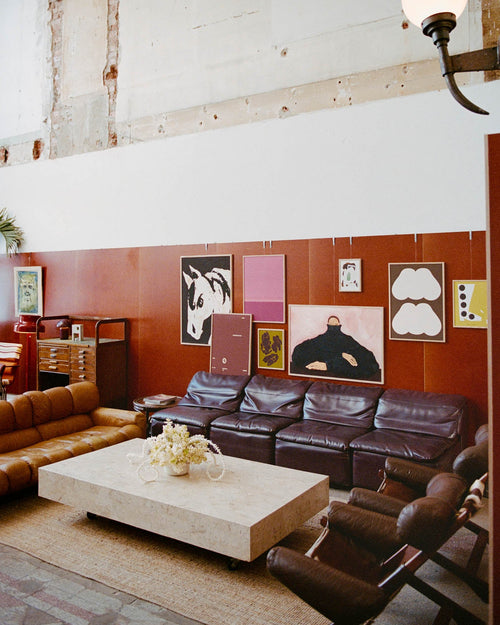 For this collection our interiors explore the intersection of Scandinavian restraint and Mediterranean warmth. Natural materials such as sandstone, rough concrete, and woven fibers set the tone, while sculptural objects, tiles, and greenery create a layered yet calm atmosphere. Within these spaces, the art is grounded by a Scandinavian philosophy of less is more, where negative space and simplicity allow each piece to breathe.