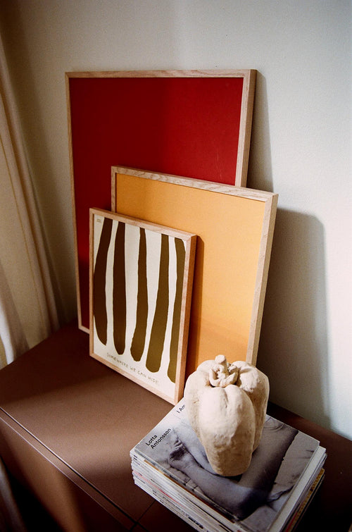 Jedes Stück ist von unterschiedlichen künstlerischen Hintergründen geprägt und spiegelt eine einzigartige Perspektive wider. Doch sie alle vereinen eine gemeinsame Vision: Kunst zu schaffen, die bewusst, harmonisch und mit dem Zuhause verbunden wirkt. Im WOA Apartment werden die Kunstdrucke mit großen, schlichten Möbeln kombiniert, sodass Textur und Farbe im Mittelpunkt stehen.